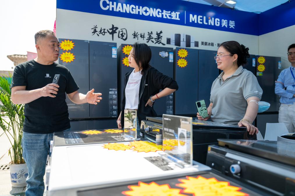 4月29日,来访者在全球服务中心企业产品展示区域参观。新华社记者 毛思倩 摄